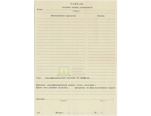 • к документу прилагается выписка с перечнем предметов и оценок;